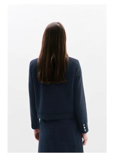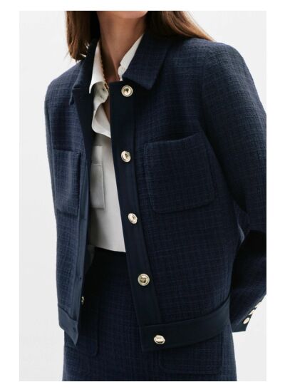 La veste Vonetta transforme le workwear tout en élégance. Avec son effet tweed, elle crée un style distinctif. Sa coupe droite et courte souligne la taille, convenant à toutes les morphologies. Un style chic pour chaque journée au bureau. - Veste courte - Coupe droite - Col chemise - Manches longues - Longueur 53 cm pour une taille 38 - Fermeture boutonnée - Tailles du 34 au 44 - À associer à la jupe Janya1 - Doublée Idées look - La veste Vonetta se marie bien avec une jupe crayon et des escarpins pour un ensemble élégant au bureau. - Ce blazer peut être combiné avec un pantalon ajusté et des ballerines pour une tenue chic décontractée. Conseil entretien Pour entretenir votre veste Caroll, il est impératif de la confier à un professionnel pour un nettoyage à sec en pressing. Le lavage, que ce soit en machine ou à la main, est interdit. Concernant le repassage : il est possible mais doit se faire à basse température (maximum 110°), et l'utilisation de la vapeur est interdite car elle peut causer des dommages irréversibles. Enfin, l'usage du sèche-linge est également interdit.