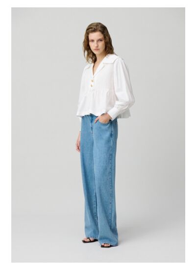 Blouse à manches longues larges avec bouton et col vareuse