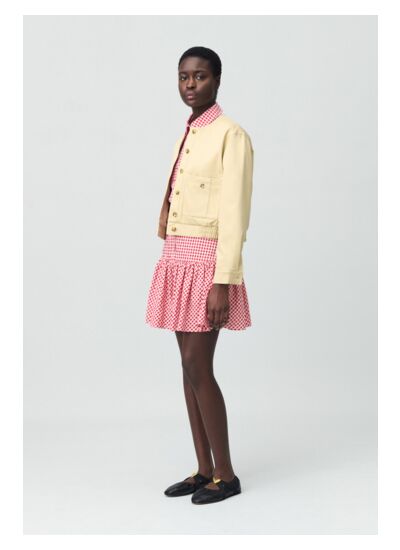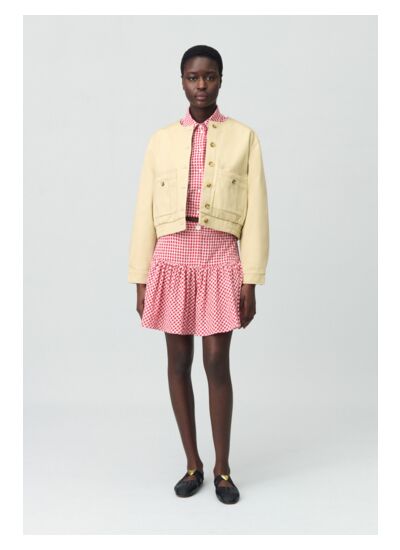 Quelle coupe propose ce blouson Claudie Pierlot ? Sa coupe courte met en valeur la silhouette avec une allure moderne et féminine, parfaite pour un style urbain et chic.