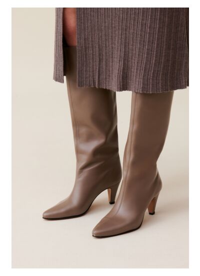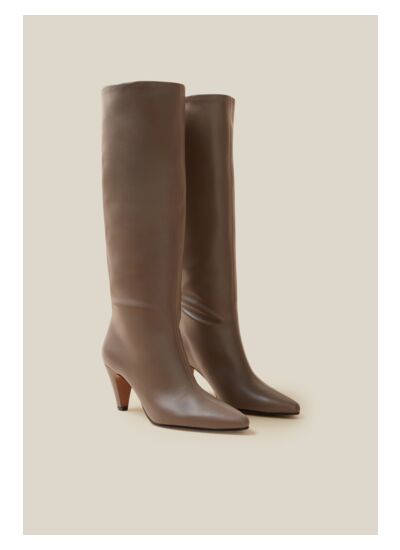 Bottes hautes en cuir lisse avec bout pointu et talon de 7,5 cm