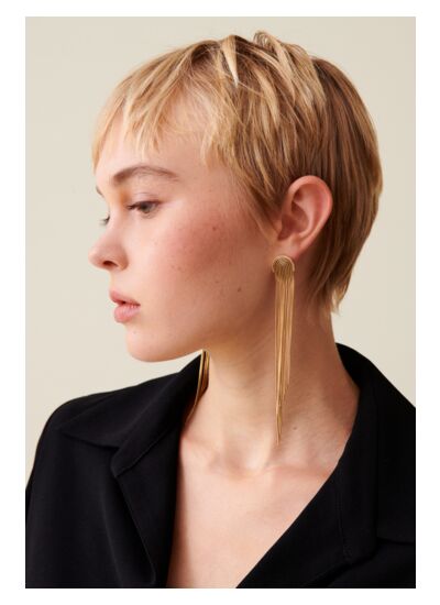 Comment entretenir les boucles d’oreilles cascade dorées Claudie Pierlot ? Pour préserver leur éclat, il est conseillé de les nettoyer délicatement avec un chiffon doux et sec, d’éviter le contact avec l’eau, les parfums ou produits cosmétiques, et de les ranger dans un écrin ou une pochette à l’abri de l’humidité.