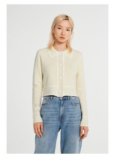 Ce cardigan est-il facile à associer avec d’autres pièces de ma garde-robe ? Sa teinte chinée et sa coupe courte en font une pièce polyvalente, parfaite pour être portée aussi bien avec un pantalon taille haute qu’avec une jupe fluide. Il s’adapte aussi bien à un look casual qu’à une tenue plus habillée.