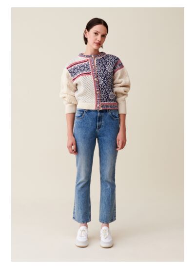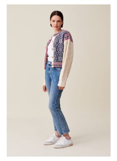 Comment entretenir ce cardigan Claudie Pierlot ? Pour préserver la qualité de la laine et la finesse du motif torsadé, il est recommandé de le laver à la main à l’eau froide ou de choisir un nettoyage à sec. Évitez le sèche-linge pour conserver sa forme.