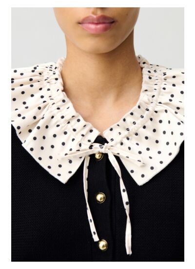 Cardigan en fines mailles avec col imprimé pois contrasté et lien à nouer