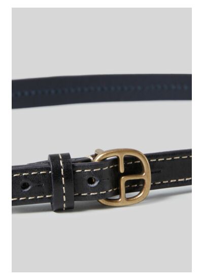 Ceinture en cuir avec surpiqûres contrastées et boucle ajustable en métal doré