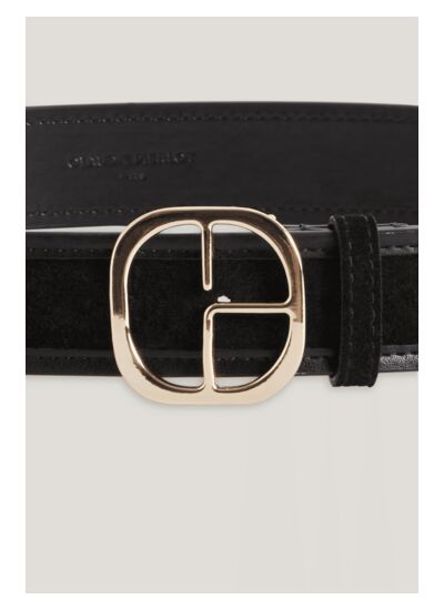 Avec quels styles cette ceinture peut-elle être portée ? Son cuir suédé noir lui confère une polyvalence remarquable, elle s’accorde aussi bien avec un jean casual qu’avec une robe chic ou un pantalon tailleur, apportant une finition raffinée à votre look.