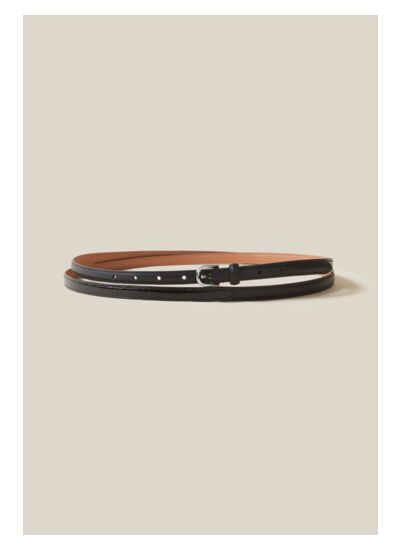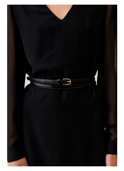 Quelle matière compose cette ceinture Claudie Pierlot ? Cette ceinture fine est confectionnée en cuir véritable, garantissant durabilité et élégance naturelle.