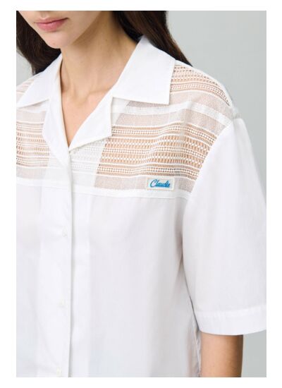 Chemise à col tailleur et coupe droite avec manches courtes et larges