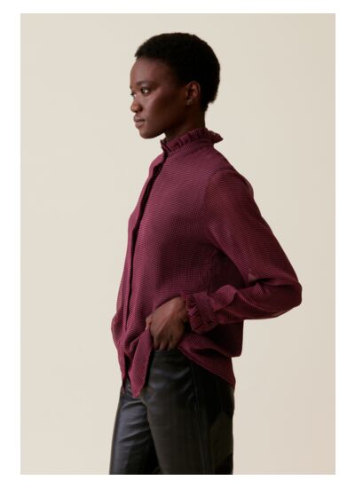 Cette chemise Claudie Pierlot est-elle adaptée à un usage quotidien ? Oui, sa matière fluide et son motif petits carreaux en font une pièce légère et facile à porter au quotidien, idéale pour un look à la fois élégant et décontracté.