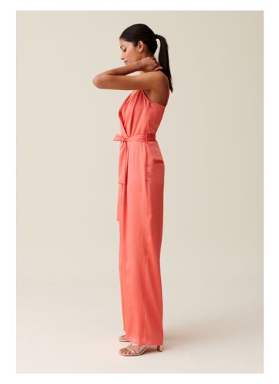 Combinaison longue et fluide décolletée en V, cintrée à la taille et à jambes larges