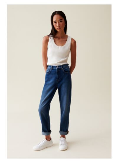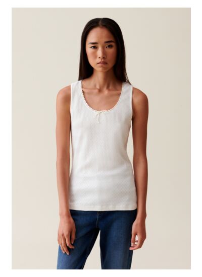 - Débardeur avec col rond et liseré fin dentelle