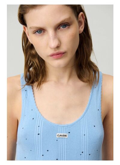 Top en fines mailles à petits pois et sans manches esprit débardeur