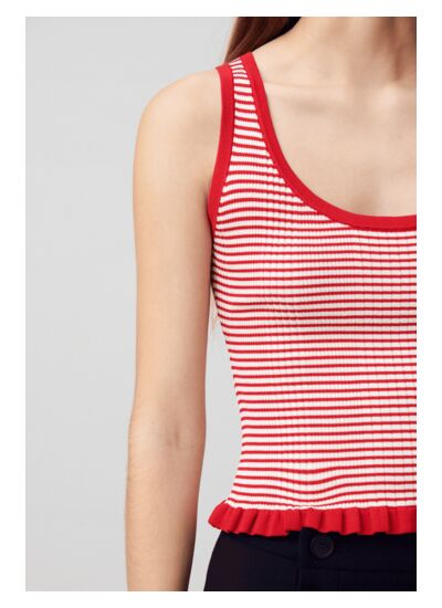Top débardeur en maille à col rond avec rayures horizontales et liserais contrastés