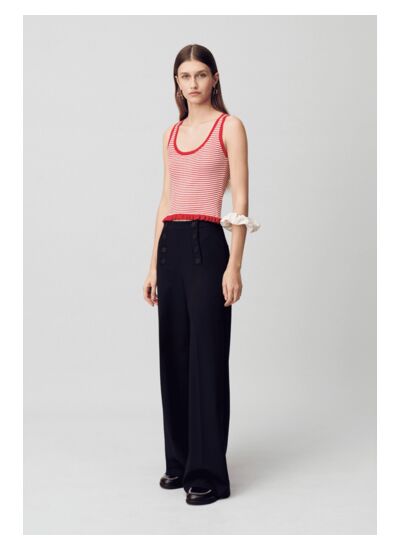 Comment entretenir ce débardeur Claudie Pierlot pour préserver sa qualité ? Il est recommandé de laver ce débardeur à la main ou en cycle délicat à basse température, puis de le laisser sécher à plat pour conserver sa forme et la finesse de la maille.