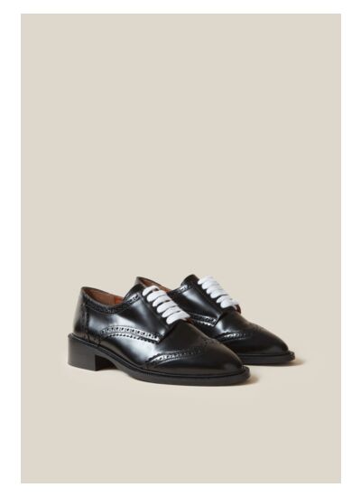 Quelle est la durabilité de ces chaussures Claudie Pierlot ? Conçues avec un cuir vernis de haute qualité et une fabrication soignée, ces derbies offrent une excellente longévité, à condition de respecter un entretien régulier et un usage adapté.