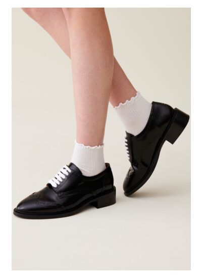 Chaussures derbies bicolores en cuir vernis avec languette arrière et petit talon