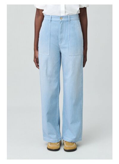Jean clair à rayures et coupe droite large avec plis pressés