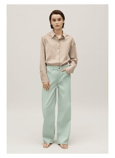 Comment entretenir ce jean pour préserver sa couleur amande ? Il est recommandé de laver ce jean à l’envers à basse température et d’éviter le sèche-linge pour conserver l’éclat de sa teinte amande et la souplesse du tissu.