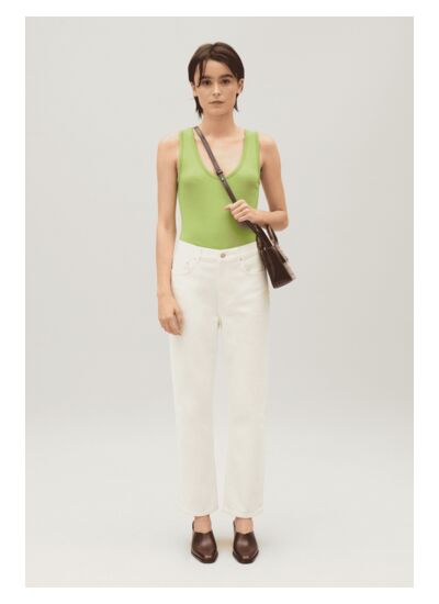 Ce jean écru s’accorde parfaitement avec des tops fluides ou des chemises structurées, ainsi qu’avec des chaussures ouvertes ou des bottines, pour un style à la fois chic et décontracté, idéal du bureau au week-end.
