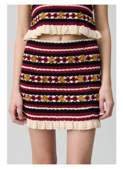 Jupe en crochet avec effet de rayures et détails de point fantaisie multicolores
