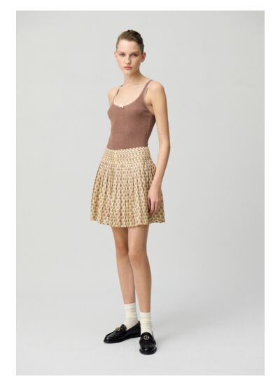 Cette jupe courte imprimée Claudie Pierlot est-elle adaptée pour un look estival ? Oui, son imprimé dynamique et sa coupe courte en font une pièce idéale pour les journées chaudes, apportant légèreté et style à vos tenues estivales. De quelle matière est composée cette jupe ? La jupe est conçue dans un tissu de qualité qui assure confort et tenue, parfait pour un usage quotidien tout en restant élégante. Comment entretenir cette jupe pour préserver son imprimé et sa forme ? Il est recommandé de suivre les instructions de lavage indiquées sur l’étiquette, généralement un lavage délicat à basse température pour conserver les couleurs et la structure du vêtement. Cette jupe convient-elle à différentes occasions ? Absolument, elle se prête aussi bien à un look décontracté qu’à une tenue plus habillée, selon les accessoires et chaussures choisis, offrant polyvalence et modernité. Quelle taille choisir pour un ajustement parfait ? Claudie Pierlot propose des tailles standard ; il est conseillé de se référer au guide des tailles pour choisir celle qui correspond le mieux à votre morphologie et garantir un confort optimal.