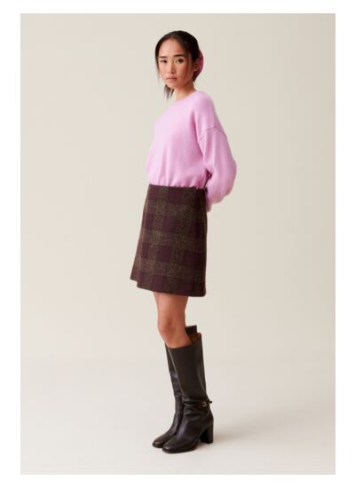 Quelle est la composition de la jupe courte maille carreaux Claudie Pierlot ? La jupe est conçue en maille de qualité, offrant à la fois confort et tenue, avec un motif carreaux qui apporte une touche élégante et moderne à votre silhouette.