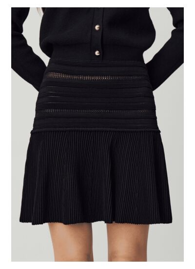 Jupe courte en maille fine avec jeux de transparence et volants en bas