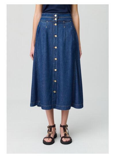 - Jupe en denim évasée longueur midi