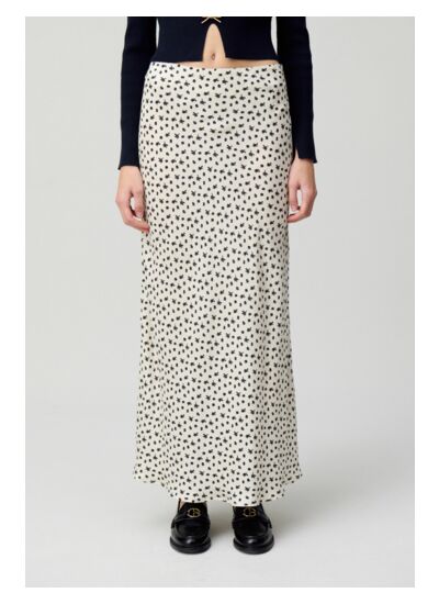 Jupe fluide longueur midi imprimé petites fleurs et effet satiné