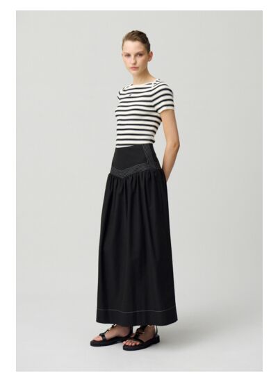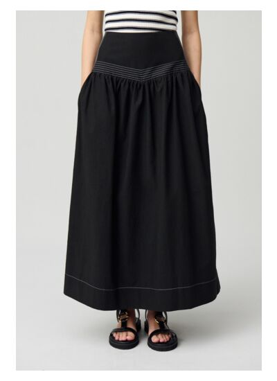 Jupe midi longueur au-dessus des chevilles avec basque et fronces évasées