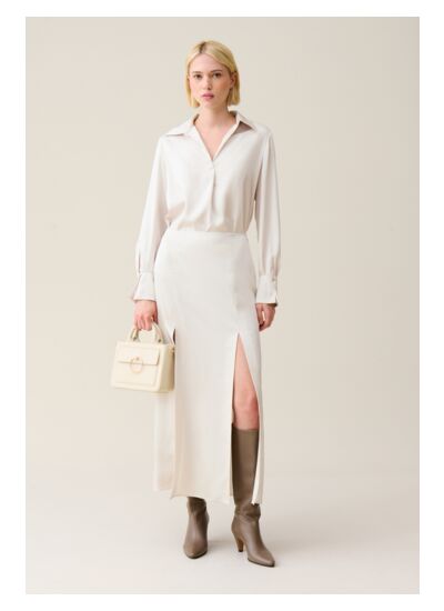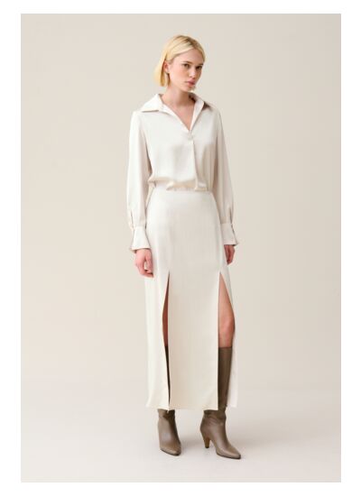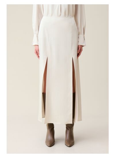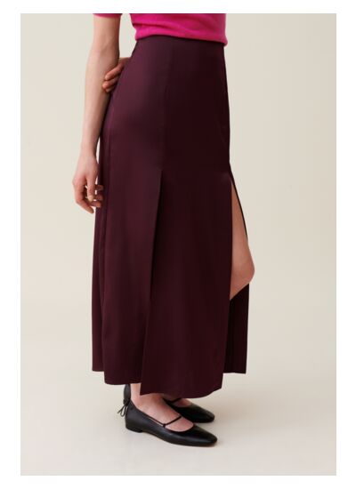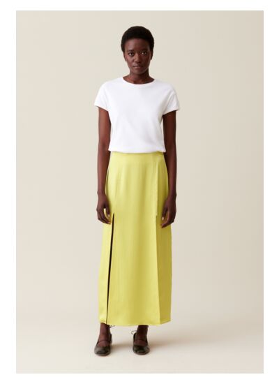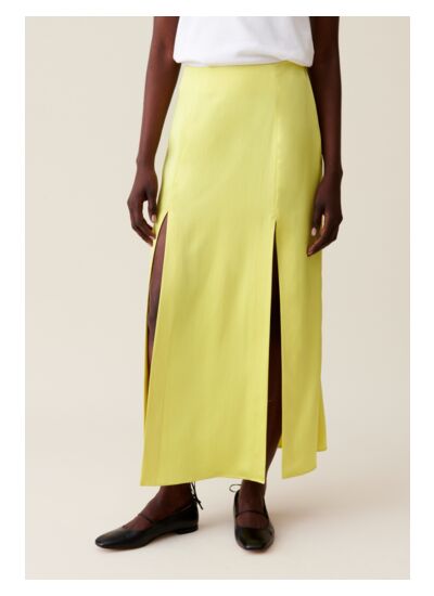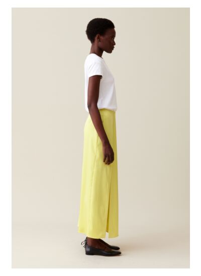 Jupe longue fluide jaune avec pinces au dos et deux fentes devant