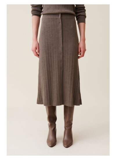 Jupe longueur 7/8ème à taille normale élastiquée avec patte de boutonnage et jeu de plissés- Jupe longueur 7/8ème- Taille normale élastiquée- Patte de boutonnage visible (8 boutons)- Jeu de plissés- Porté classique