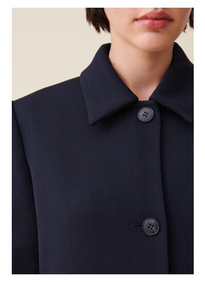 Comment entretenir ce manteau bleu Claudie Pierlot ? Pour préserver la qualité du tissu et la couleur, il est recommandé de suivre les instructions d’entretien indiquées sur l’étiquette, généralement un nettoyage à sec professionnel.