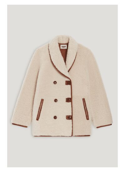 Manteau réversible en peau lainée cuir et laine