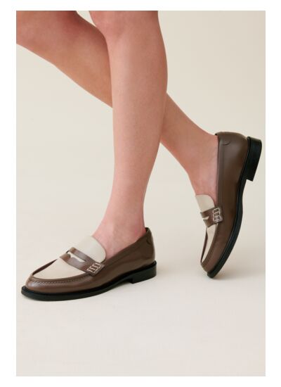 Mocassins bicolores en cuir glacé avec languette arrière embossée Claudie Pierlot