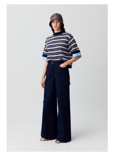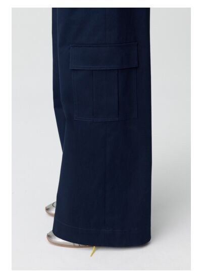 Pantalon en gabardine de coton type cargo avec jambe droite et large