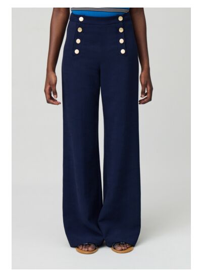 Pantalon à pont à jambes longues et droites avec détails boutonnés à l'avant