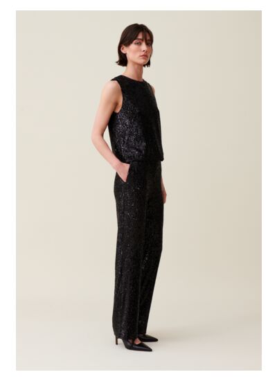 Ce pantalon à sequins noir convient-il pour une tenue de soirée ?
