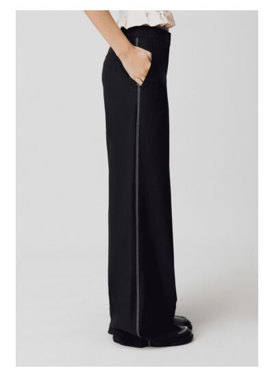 - Fermeture avec braguette cachée, agrafe et bouton de renfort à l'intérieur