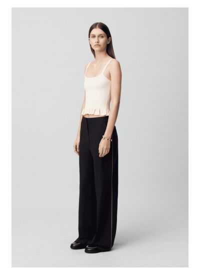 Comment porter ce pantalon pour un look moderne ? Associez-le à un haut ajusté ou une blouse fluide pour équilibrer le volume. Il se marie parfaitement avec des chaussures à talons pour allonger la silhouette ou des baskets pour un style décontracté chic.