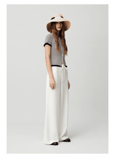 La taille élastiquée offre une certaine flexibilité, mais il est conseillé de se référer au guide des tailles Claudie Pierlot pour un ajustement précis selon vos mesures.