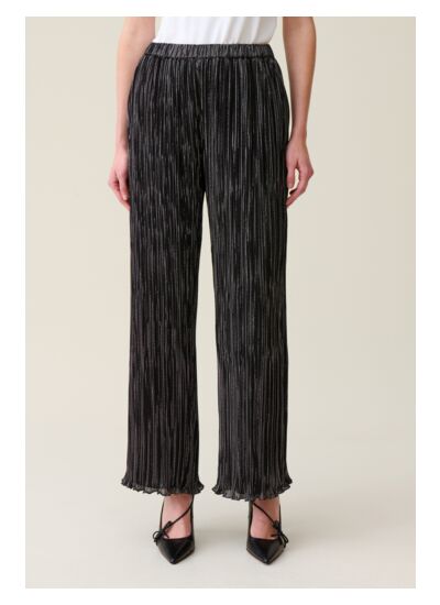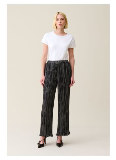 Quelle est la matière de ce pantalon et quel confort offre-t-elle ? Ce pantalon est fabriqué dans un tissu léger et fluide qui assure une grande liberté de mouvement tout en gardant une tenue impeccable. Sa texture plissée apporte une touche sophistiquée sans sacrifier le confort.