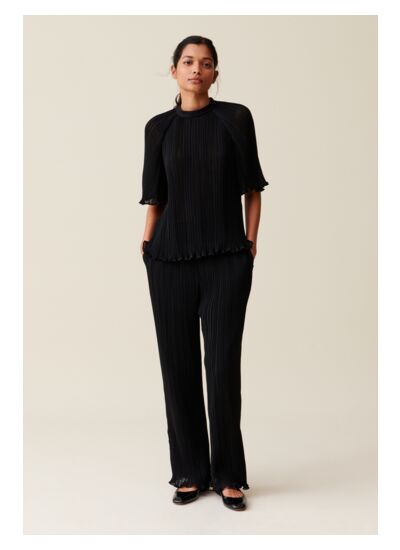 Ce pantalon Claudie Pierlot est-il adapté à un usage quotidien ? Ce pantalon fluide plissé volanté allie confort et élégance, idéal pour un look soigné au quotidien comme pour des occasions plus habillées.