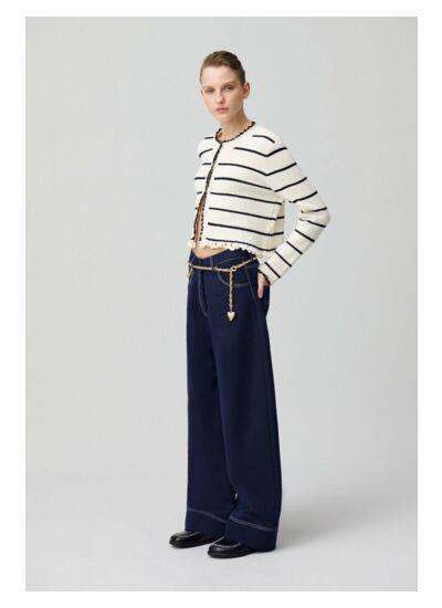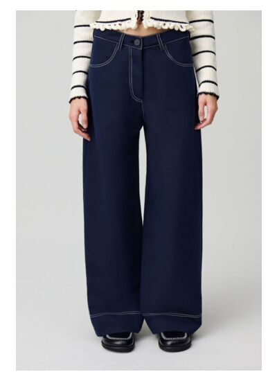 Pantalon large, taille normale et détails de surpiqures contrastées