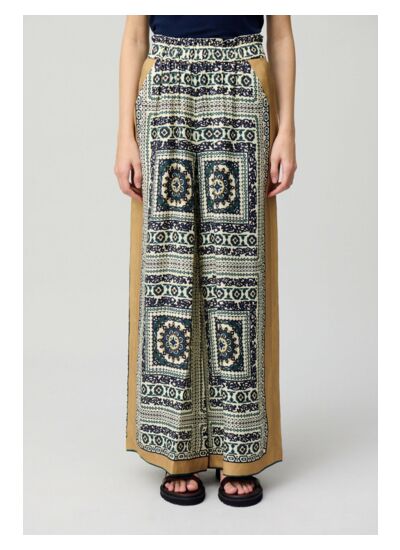 Pantalon fluide satiné à jambes larges et droites avec imprimé