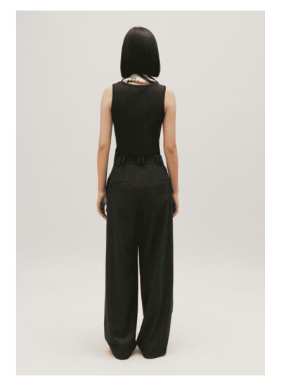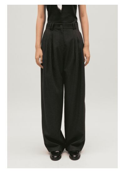 Comment porter ce pantalon large gris chiné pour un look moderne ?
