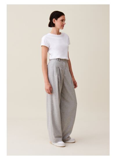 Pantalon large en maille à jeu de plis plats sur l'avant