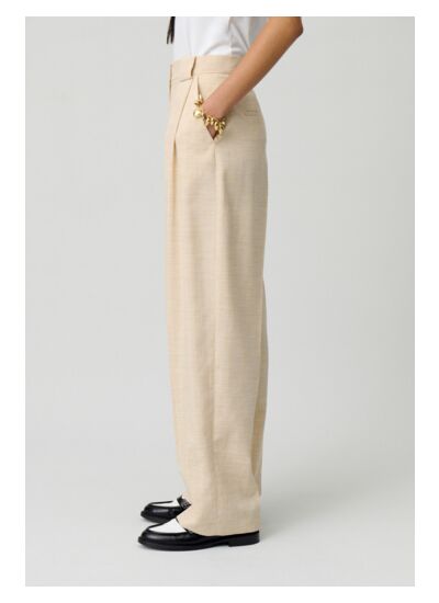 Pantalon long et large à taille haute avec plis cassés sur le devant et au dos