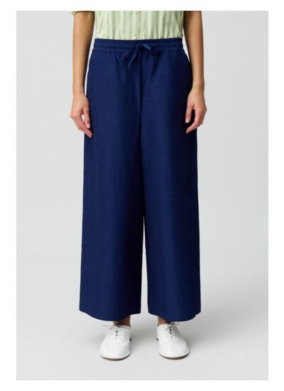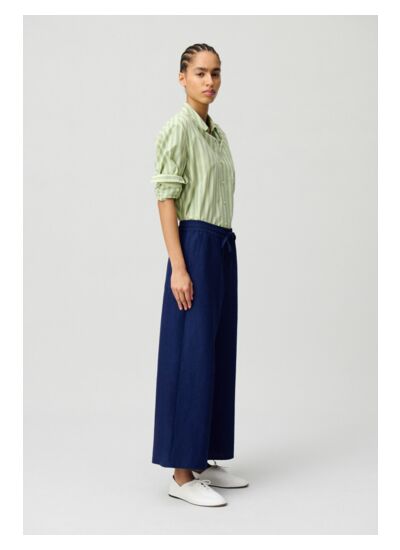 Pantalon léger à jambes longues et larges avec taille normale élastiquée et liens à nouer