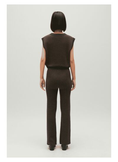 Taille haute côtelée et élastiquée, petites fentes aux chevilles